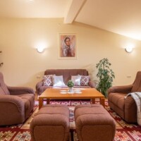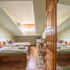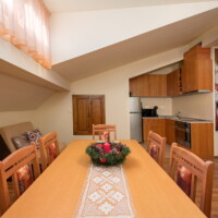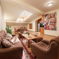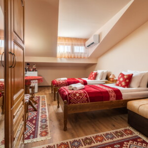 Настаняване – В къщата може да бъдат настанени до 14 човека. Стаите са с размер 25 кв.м., апартамента 65 кв.м. Във всяка стая има SMART телевизор, а в апартамента има в спалнята и хола с трапезарията. За удобство на гостите има ски гардероб и безплатен Wi-Fi. Непосредствено зад къщата може да се паркира на обществен паркинг – Координати – https://maps.app.goo.gl/kdB2xefsK2UWpvCg8