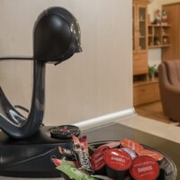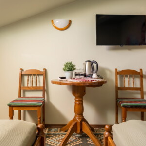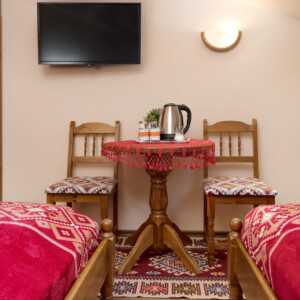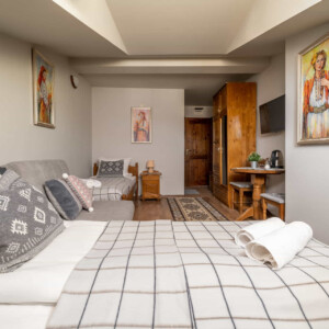 Оборудване – Във всички помещения има климатик, хладилник, SMART TV, гардероб, електрическа кана, сешоар, ютия и дъска за гладене, спално бельо. Като комплимент за гостите предлагаме кафе и чай.